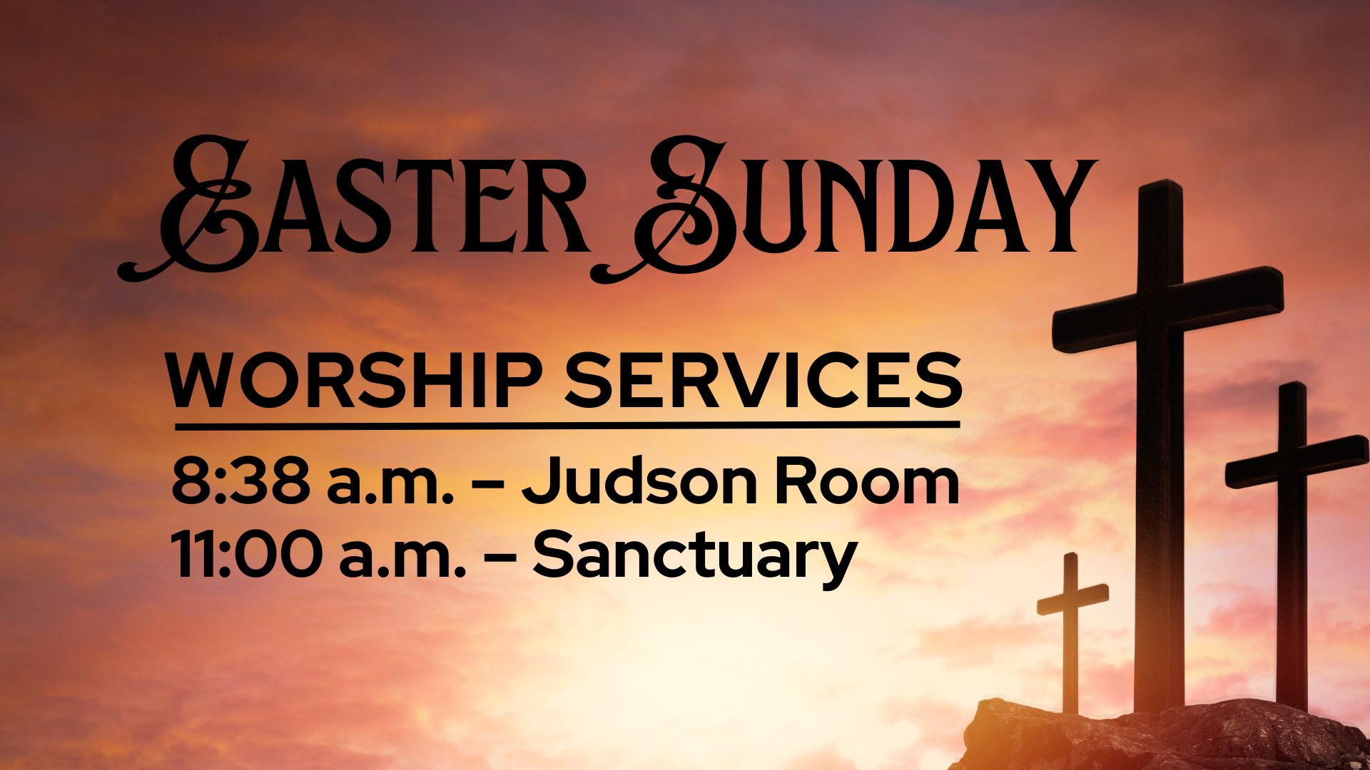 Easter worship services at 8:38 a.m. and 11:00 a.m.! Join us each Sunday at 8:38 a.m. in person or at 11:00 a.m. for a service that's both in person and livestreamed!)