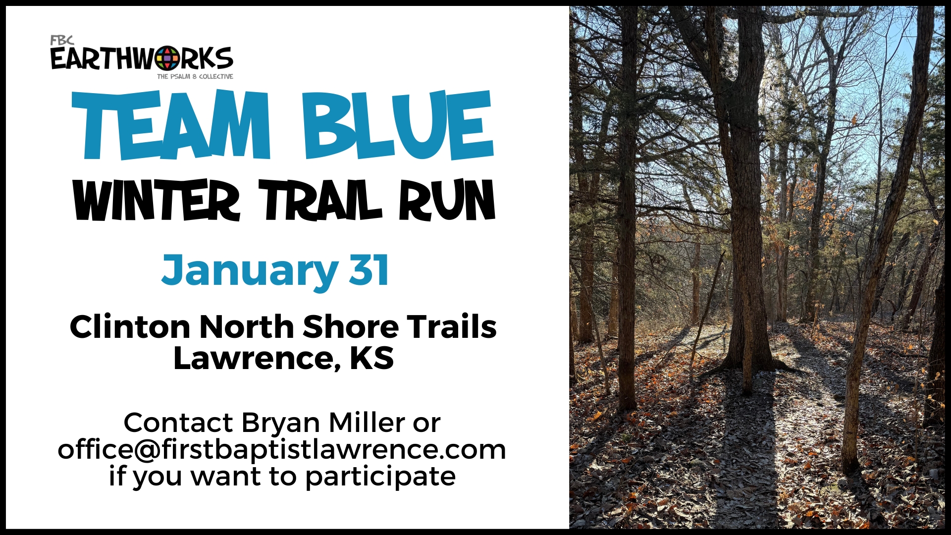 (7:30 time shown is TBD. Contact Bryan Miller or Susan Pauls via the FBC office for more info.) Always wanted to get into trail running but don't know where to start? Want to get a little more active and would like some company? Do we have an offer for you! The Earthworks Blue Team is […]