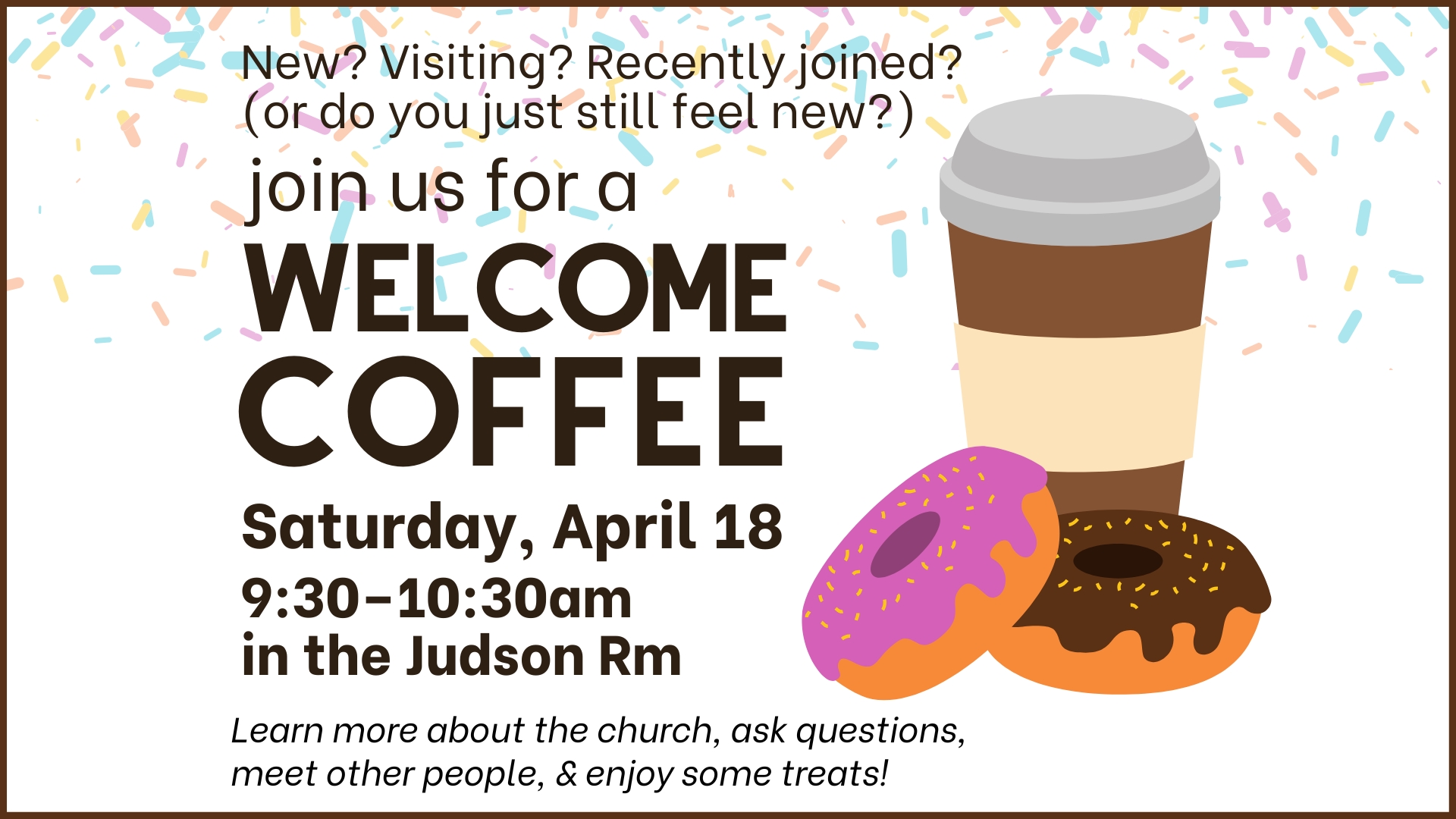 Are you new to FBC? Visiting? Recently joined? Or do you just still feel new? Join us for a welcome coffee! You can learn more about the church, ask questions, […]